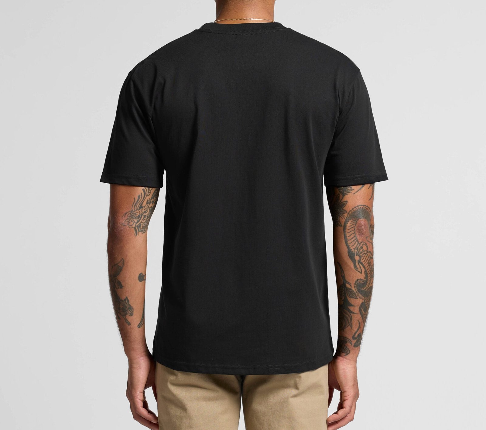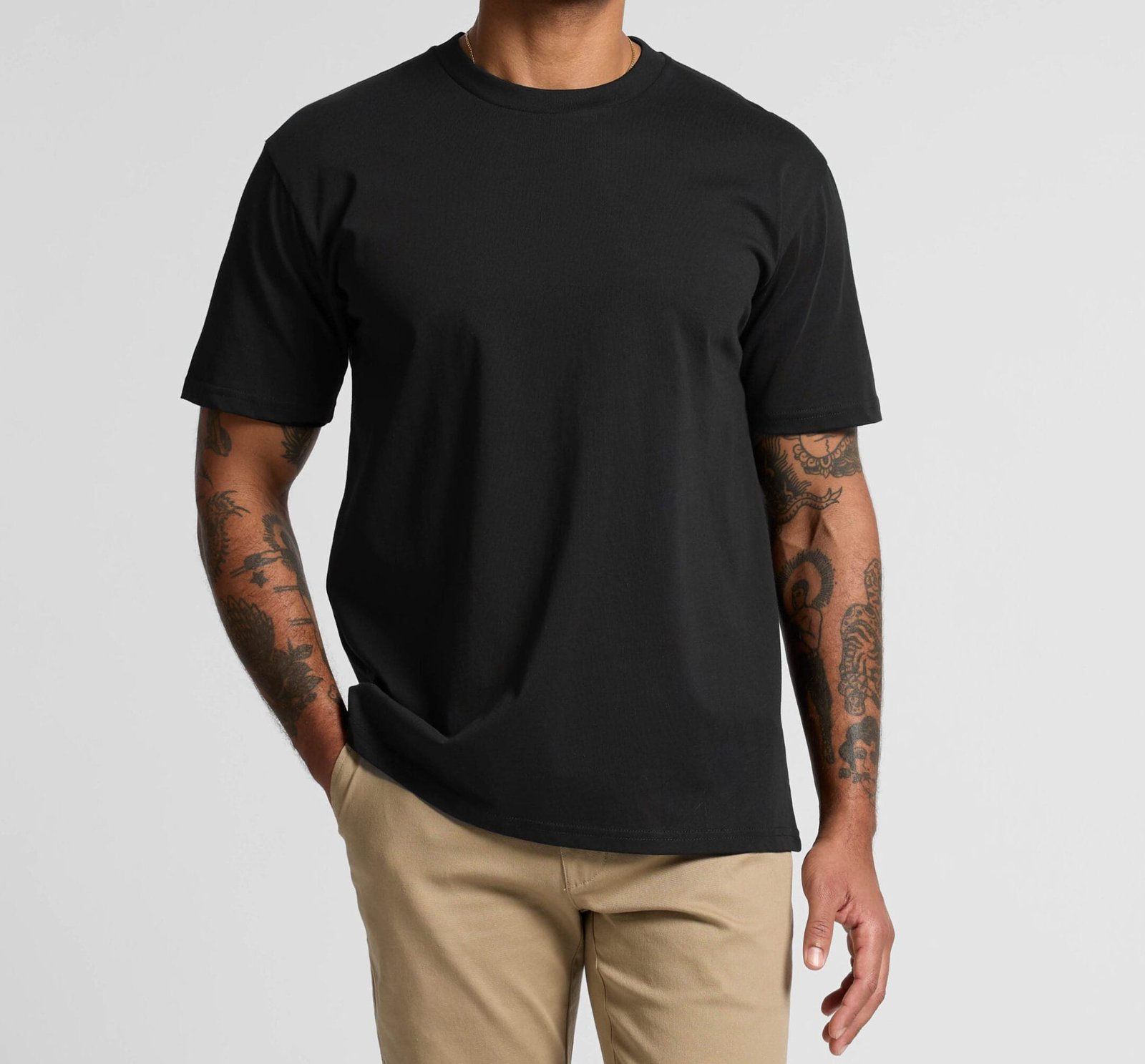Men’s medium weight relaxed fit classic crew neck black T-shirt made with 100% Organic Cotton preshrunk to minimize shrinkage.